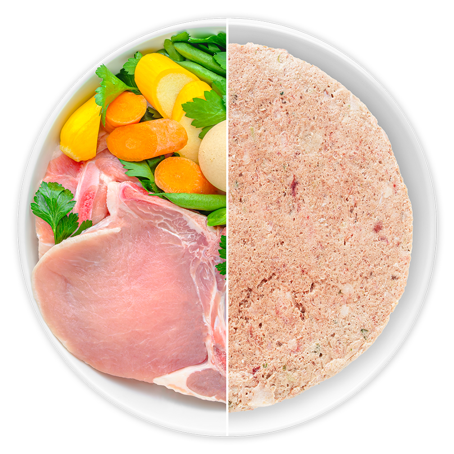 At the heart of your dog's vitality is a healthy gut, and our Mighty Raw™ recipe is crafted to deliver exactly that! With a powerful blend of fermented and whole food ingredients, our one-of-a-kind recipe is full of probiotic power to support gut health and boost nutrient absorption. Our Mighty Raw Pork Recipe is packed with 90% premium animal protein, featuring pork, pork liver, pork heart, pork kidney, and ground pork bone as the first five ingredients. This powerful lineup, combined with fermented vegetables, fermented raw whey, and other natural, wholefood ingredients, provides all the nutrition your dog needs for a strong body, healthy gut, and happy life.