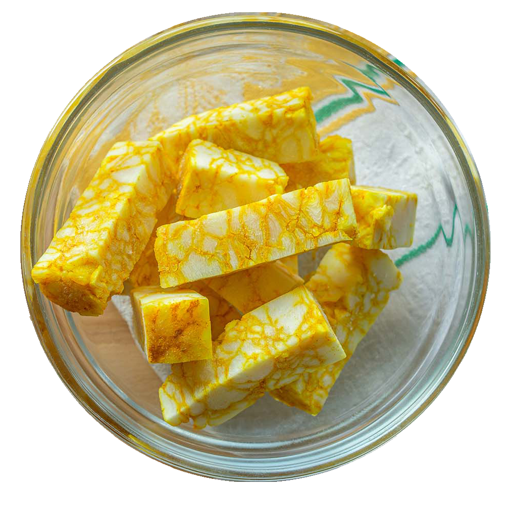 Raw goat cheese (raw goat milk, dried Lactococcus lactis subsp. lactis fermentation product, dried Lactococcus lactis subsp. cremoris fermentation product, microbial rennet), salt, organic turmeric.