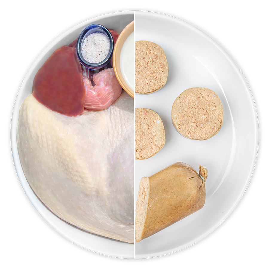 Our Simply Protein™ limited-ingredient recipe is the perfect protein base for any healthy, delicious raw meal you make for your dog. Our curated ingredients consist of only whole cuts of meat, organs and finely ground bone combined with the power of fermented raw whey to support gut health and boost nutrient absorption, so your dog can get the most out of every ingredient. It's also perfect for dogs with specific allergies, sensitivities or even just picky eaters.